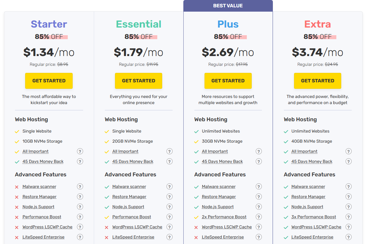 They also have special hosting plans designed to support various platforms, such as WordPress HostingWooCommerce HostingMagento Hosting and OpenCart Hosting.