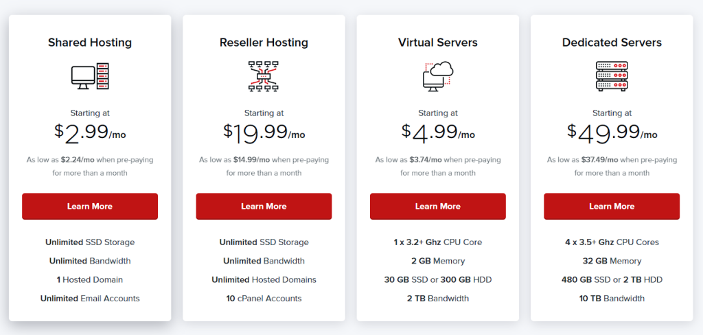 It’s also worth mentioning the unlimited resources that come with these plans. I’m talking about unlimited SSD storage (in RAID configuration), unlimited bandwidth, unlimited sub-domains, unlimited databases, and unlimited email accounts.